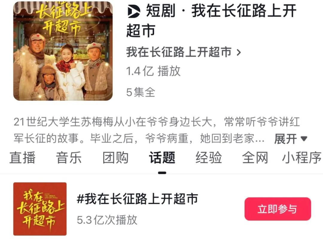 “我在长征路上开超市”,不但在内容上打了个样子,而且让行业看到了主旋律微短剧的市场潜力。
