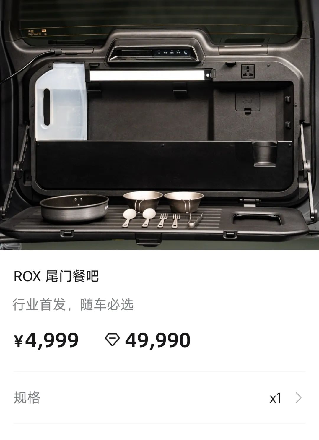 潘哥发现,在极石汽车官方商城里,有一款售价4999元的尾门餐,包括茶壶、餐桌、餐具等。