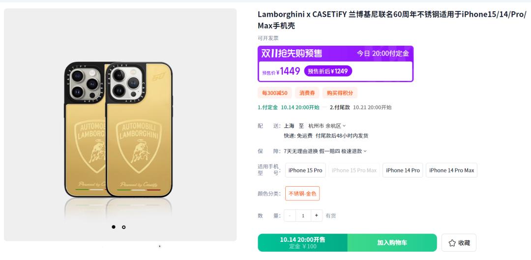 这个品牌还不是最贵的商品,现在,他们在天猫旗舰店上架的兰博基尼联名手机壳,售价超过1400。