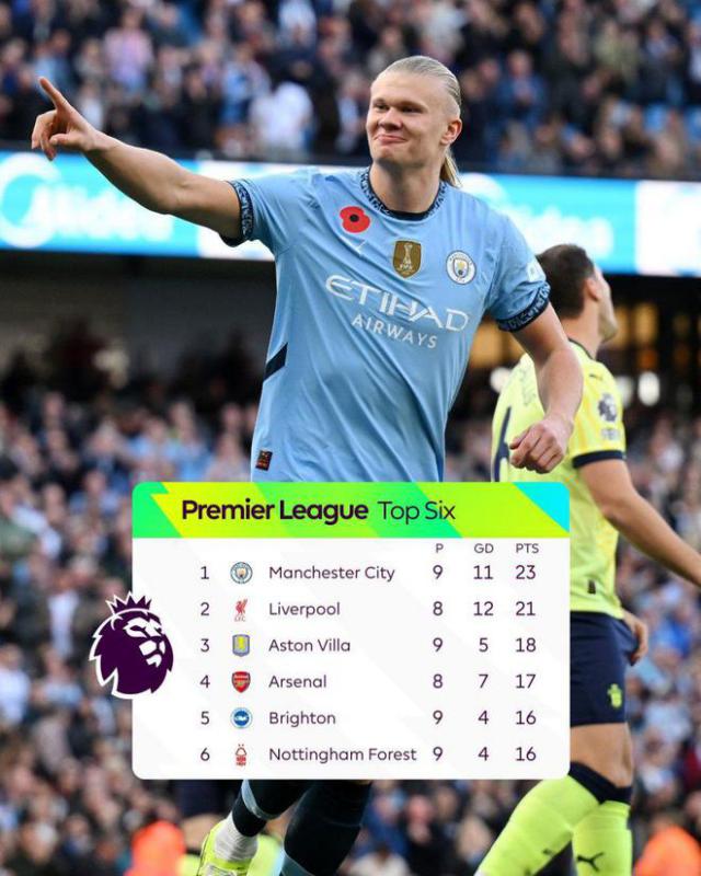 英超第 9 轮子,曼城主场 1-0 击败南安普顿,在比赛前提下登顶。努内斯 5 一分钟的助攻,哈兰德高难度地倒下卧射,打进了整场比赛唯一的进球。