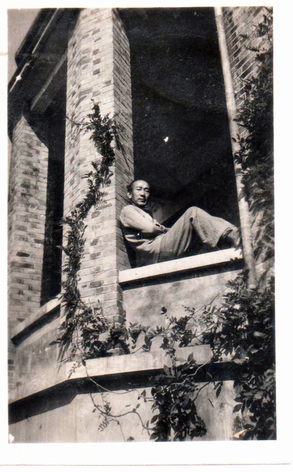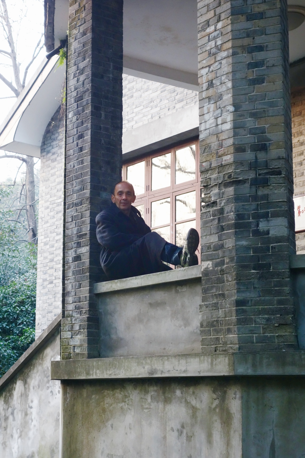 2012年,林风眠外孙杰拉德参观外祖父故居玉泉别墅时,模仿姥爷留下照片。