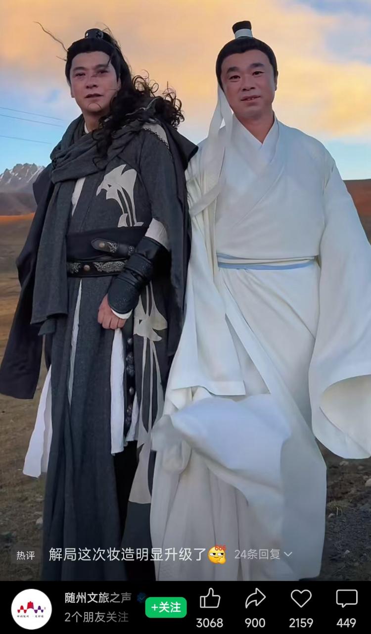 上游新闻注意到,省、市级文化旅游部门的官方账号,包括“湖北文化旅游”、“随州文化旅游之声”、“甘孜文化旅游”等。,解决了主任和刘主任的个人大号(粉丝主要关注账号),并发布了一段了解主任刘主任合拍武侠片的短视频。视频中,主任穿着白色侠客服,刘主任也是经典的黑白侠客服。两人都拿着长剑,并肩走在草原上。