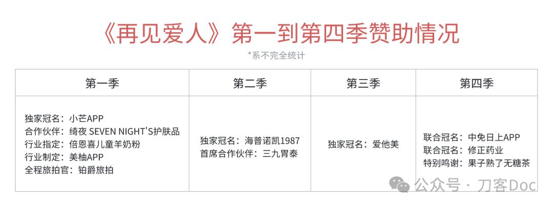 关于“再见爱人”的赞助商,我统计了以下表格: