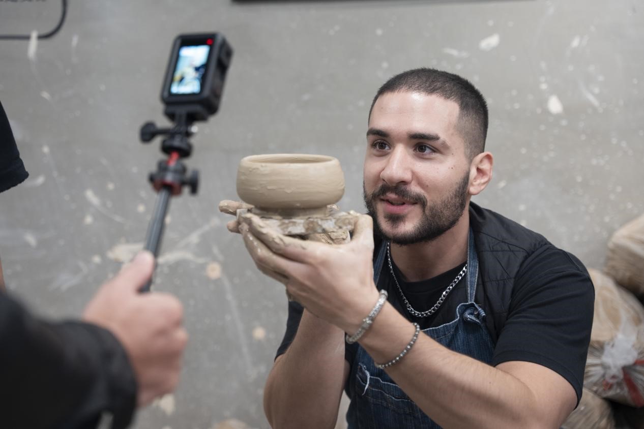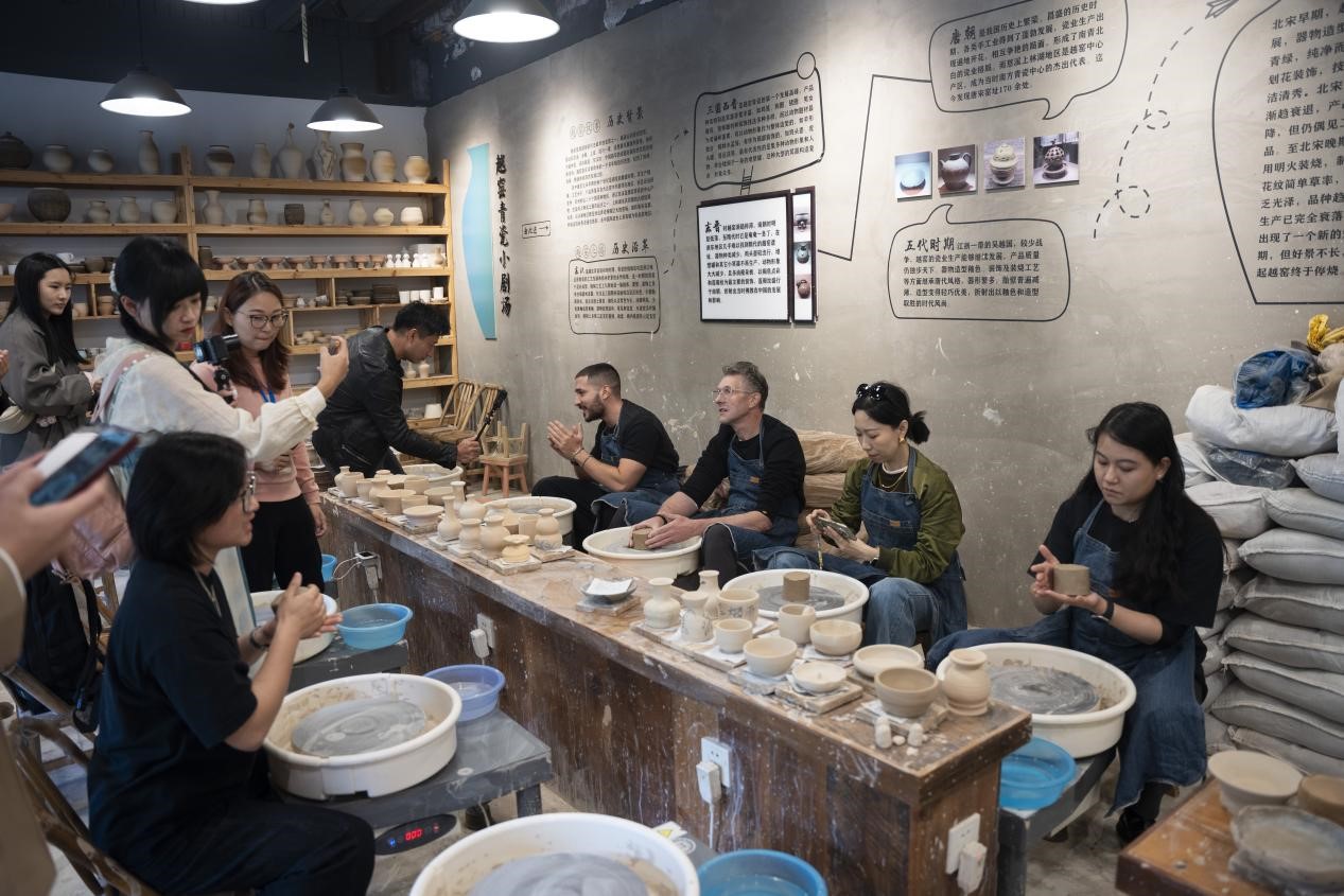 “我无法想象我可以在这里自己制作青瓷。我以前只在电影里看到过,好像几千年的中国文化都在我手里流淌。”当我的手碰到泥坯时,来自意大利的博主“安德烈”非常兴奋。