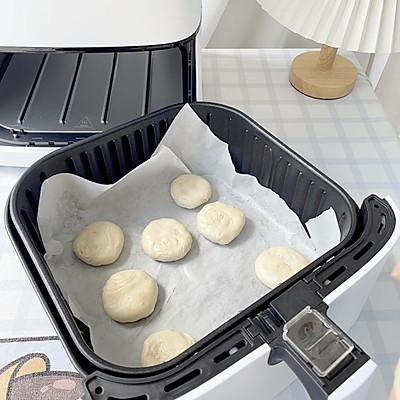 4、4. 用手抓饼把红豆沙包起来,碾成饼状!放入气体炸篮中