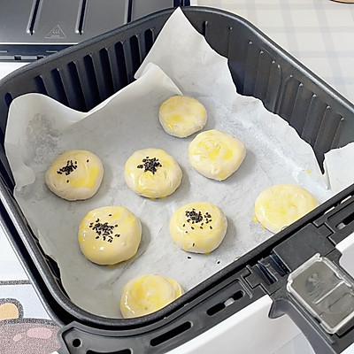 5、5. 再次在红豆酥表面刷一些蛋黄液,弄点黑芝麻!