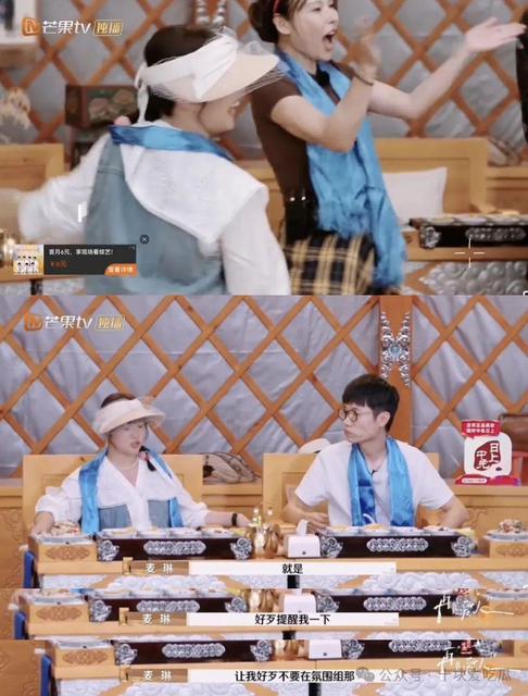 当她去民宿吃饭时,有一个舞蹈阶段。作为导游,麦麦第一次参加,试图调节气氛。起初,她跳得很开心,但看到黄圣依加入后,她退到了后面。