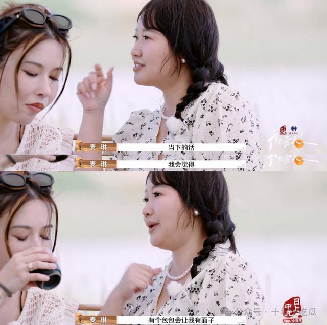 以她和张泉灵对话的部分为例。她只是想要一个包,但是很难说出来。在对方的“灵魂折磨”下,她说"送个包给自己面子"。