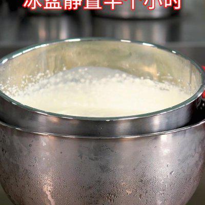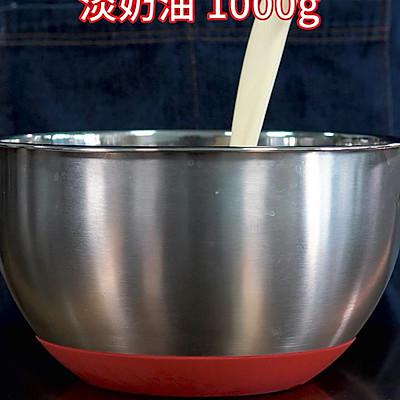 1、步骤一:将淡奶油放入冰盘中 1000g