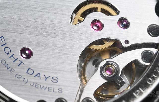 P5000 从数据上看,机芯的宽度是 35.7 mm,薄厚达 4.5 mm,采用双发条盒,摆频 21600 次 / 使用无卡度砝码微调摆陀。P5000 运动还保持了沛纳海自产运动的粗装修风格,覆盖了大夹板,并进行了大规模的拉丝装饰。只有在三轮位置,才特意镂空,让佩戴者看到暴露的三轮,提高运动的观赏价值。虽然现在长动力机芯比以前要多得多,但是沛纳海 P5000 的 8 在同一级别的机芯中,天动力仍然非常猛烈。