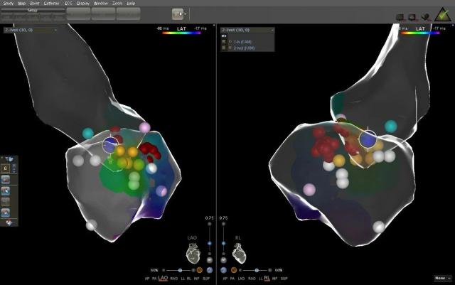 手术过程中,心内科心脏电生理团队通过心内电生理检查确定了陆阿姨右房间的速度,通过3D建模找到了房间速度发作的病变靶点,但病变靶点离希氏束太近。希氏束是心脏传导系统的重要组成部分,在消溶过程中可能会损伤希氏束,导致室内传导阻滞,甚至可能需要安装永久起搏器,手术风险极高。