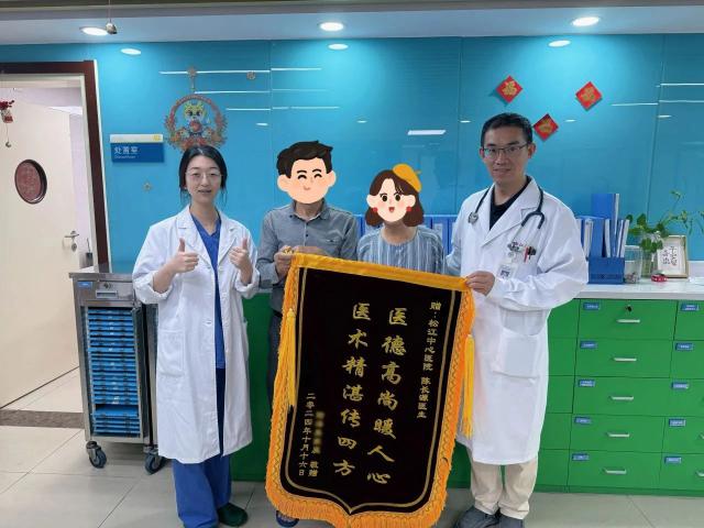为了保证病人的安全,在离希氏束较远的地方消溶失败,术中陆阿姨心跳过速反复发作。考虑到陆阿姨反复患有心悸,精神极度焦虑,最近口服抗心律失常药物治疗无效,陈长源选择了主动脉内无冠窦消溶并取得成功,手术中没有出现希氏束损伤等严重并发症。手术后,陆阿姨不需要口服抗心律失常的药物治疗,房速也没有再发作。为了表示感激之情,陆阿姨在出院后还特意送来了横幅。
