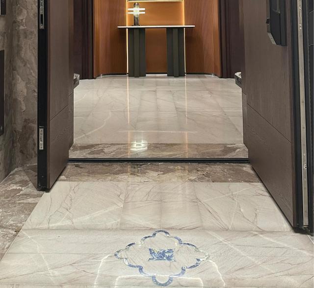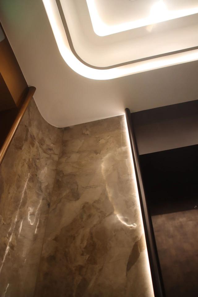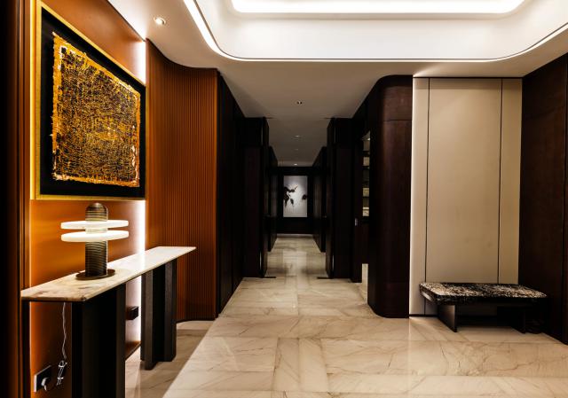 当你站在电梯厅,有这种华丽精致的视觉美感,层次感很强。