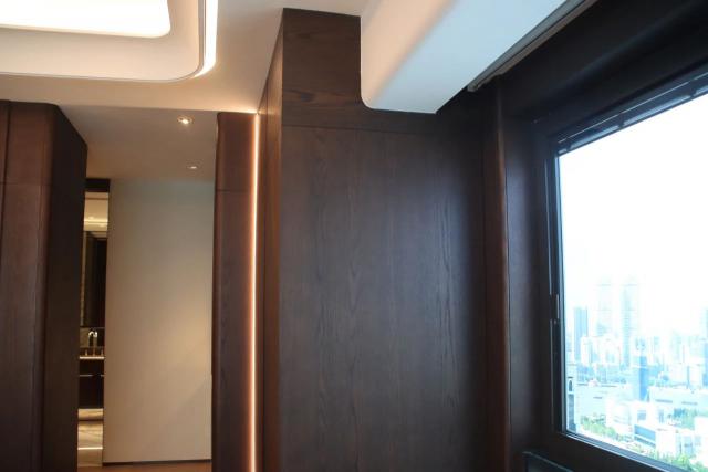 或者这种皮革与木饰面、木饰面与墙面覆盖的连接极其光滑,无可挑剔。