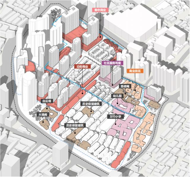 前面提到的城隍庙或三件套都在露香园周围,视线为100米。