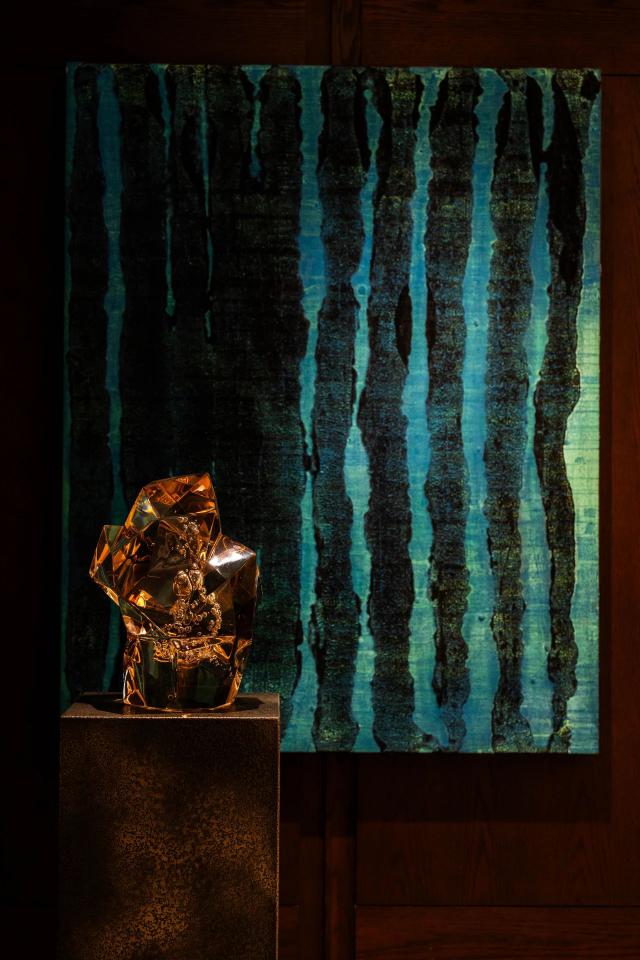 在玄关被石头包裹的空间里,路面中心点缀着玻利维亚蓝豪石,世界上最贵的豪石。