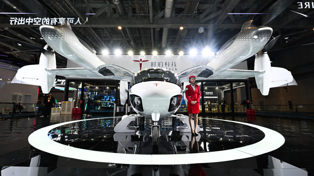11月7日,科技E20在第七届中国国际进口博览会汽车展区拍摄。 EVTOL电动垂直起降飞机。 新华社记者 辛悦卫 摄