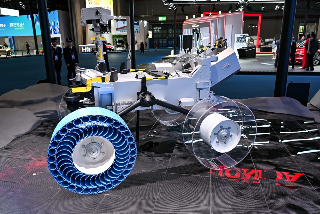 十一月五日,米其林月球检测车轮胎在第七届进博会汽车展区拍摄。 新华社记者 张铖 摄