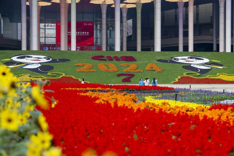 第七届中国国际进口博览会——国家会展中心(上海)外景,于11月4日拍摄。 新华社记者 王翔 摄