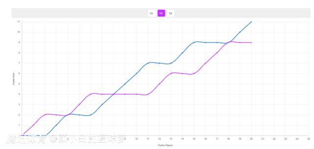 在第三场比赛中,石头领先,杜达追上。 6-6,然后石头就是连续得分最终得分。 11-7 拿下。