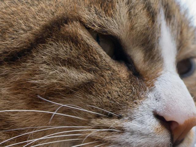 让我们放大细节。除了猫的胡子,连脸上的头发都是根根分明的。不愧是哈苏,数毛党狂喜。 ~