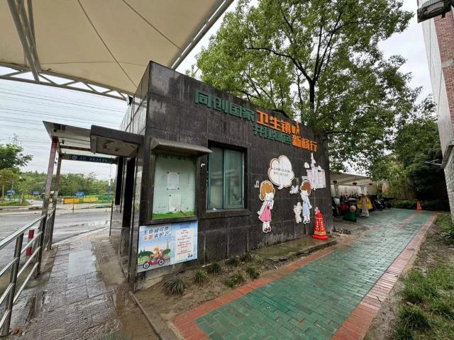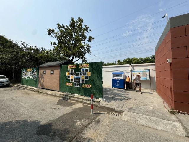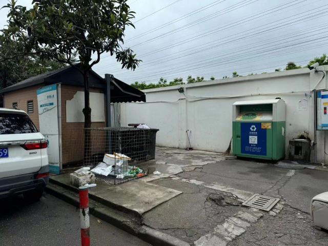 西边小道连接的西门另一边是小区内的垃圾分类点,连接安装智能柜,不但来往人多,而且经常飘出异味。