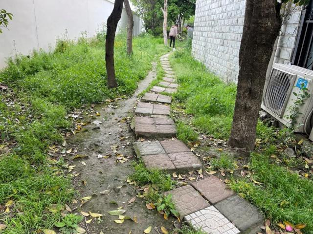 社区居委会立即联系行业委员会和物业进行现场检查,发现西院墙内的便民小道由于年久损坏、路面泥泞、周围植被茂盛,雨天更容易摔倒,交通极其不便,确实需要修复。
