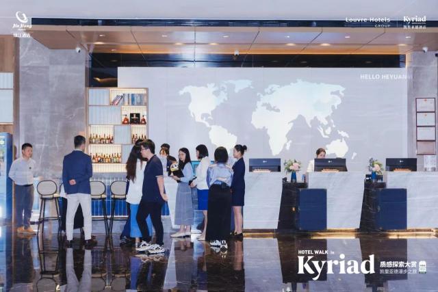 在现场,客人在收到“藏宝图”后变成了“当代冒险家”,在凯里亚德酒店(3.0 版河源和平店)玩起了沉浸式的“探索”。走进凯里亚德酒店,以“ Kyriad Blue “酒店的装修风格、大堂的地球仪、前台的世界地图都给人以强烈的视觉冲击,这与凯里亚德品牌“大航海时代杰出冒险家勇敢探索”的品牌灵感高度契合。
