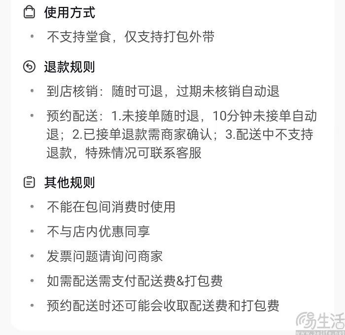 同样的团购商品不仅支持店铺核销,还支持送货上门,无疑是商家和用户的双赢。毕竟更丰富的核销方式意味着更多的适用场景,让用户有更多更灵活的选择,不仅可以提升用户体验,还可以减少客户的顾虑。商家不仅可以通过丰富的核销场景提高用户的下单意愿和订单核销率,还可以实现一品多用途,从而降低运营成本。