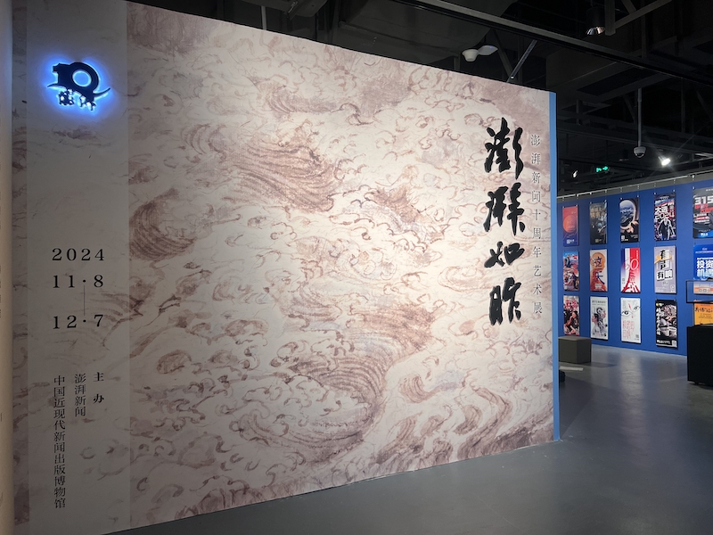 在中国现代新闻出版博物馆五楼,“澎湃如昨-澎湃新闻十周年艺术展”展出现场