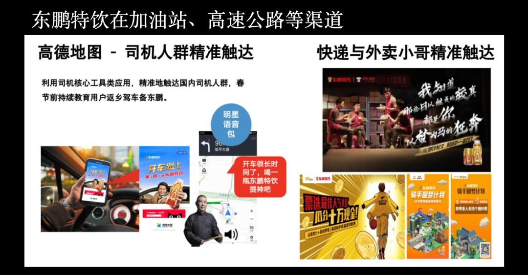 “东鹏初期” 特殊渠道为主,流通为辅。 ",渠道重心在工厂、加油站、高速公路休息站等特殊渠道,这是精确的渠道投放。