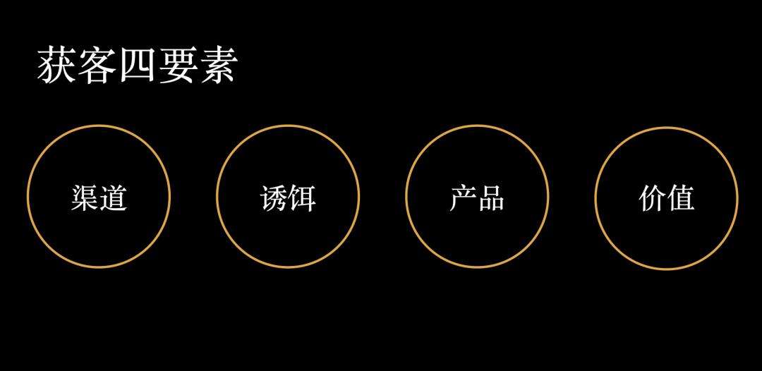 获得客户的四个要素:渠道,诱饵,商品,价值。