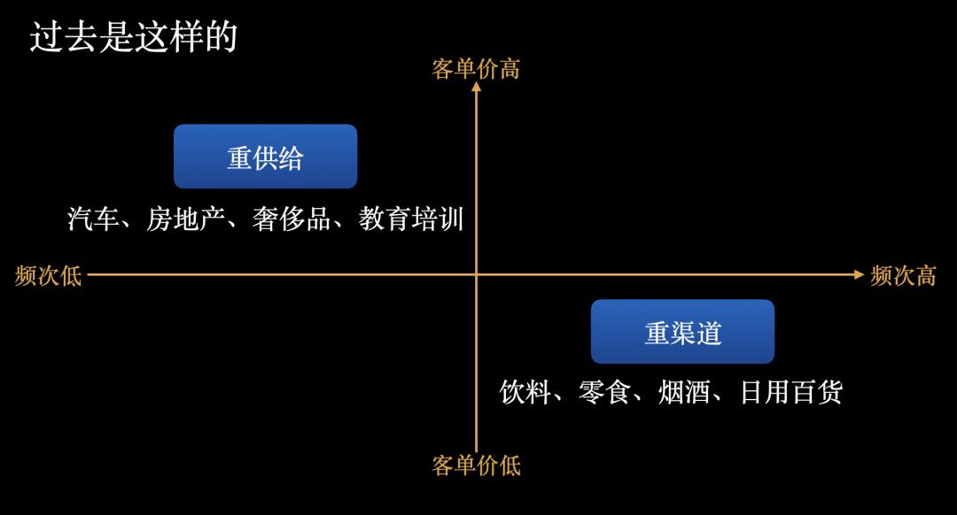 二是房间、汽车、教育等高客单、低频品类,过去以商品为核心。