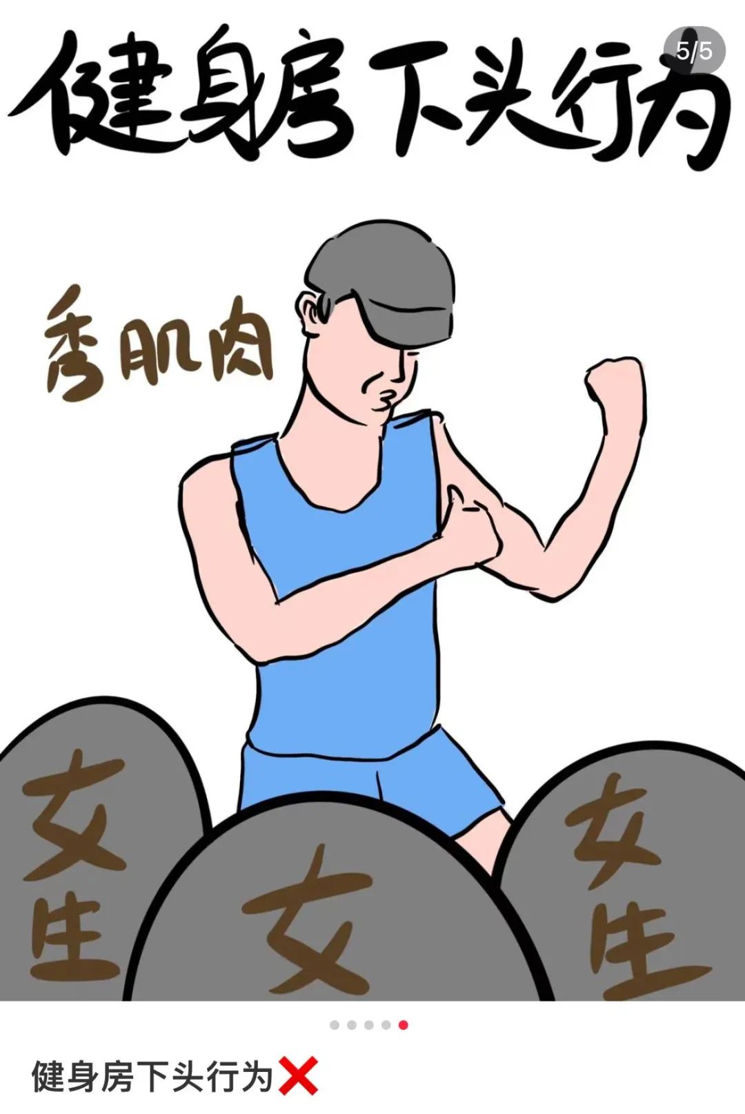 是否有性张力很难把握,为了防止性收缩,至少需要文明健身。健身房也是一个社交场所, 个体的行为习惯体现了他的素质。例如: