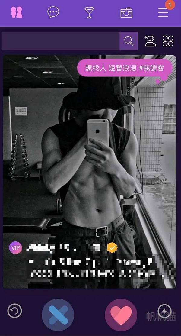 全身充血的照片,昏暗健身房若隐若现的动态肌肉线条,「有健身习惯」「增肌中」tag。在dating中,健身可以带来性张力。 在app中体现得很清楚。