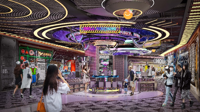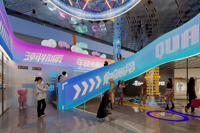 在商场的楼层布局上,定期更换的艺术之美得到了充分满足用户购买和打卡拍照的需求,进一步实现了“二次元” 零售 美食+“潮玩”跨境营销。