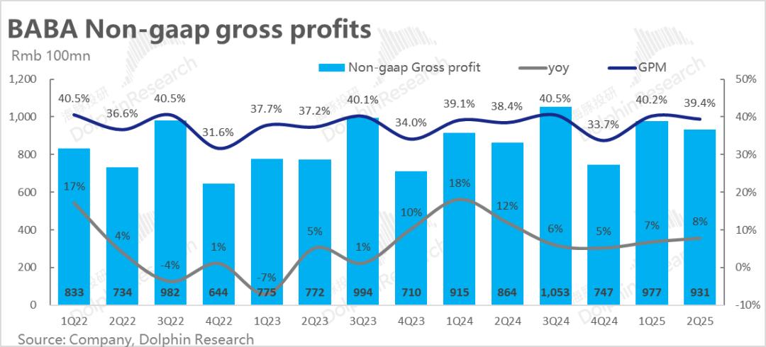 CMR的增长趋势有所改善,但与预期相比较弱,仍然可以勉强相抵。本季淘天集团adj.EBITA为446亿元,比去年同期减少约5.3%,与上赛季相比,下降幅度继续扩大1%,也低于预期的459亿元。则无任何找补。根据公司的说法,利润下降的主要目的是增加客户体验(如补贴)的投入。