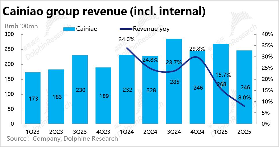 现在菜鸟和出海业务几乎是一种伴随性的想法。由于国际电子商务板块增长放缓,本季度菜鸟收入同比增长率也从15.7%下降到8%。但由于跨境物流所需的高额capex投资,上季度已经盈利的菜鸟本季度adj.EBITA大幅缩小到只有0.6亿,大幅低于预期。假如是国际电子商务 新手合并一起看,总亏损缩窄只有2~3亿左右,谈不上好。赚钱的轻资产属于国际电商,苦商重资产的物流capex却是菜鸟担,只能说同一个出身不同。