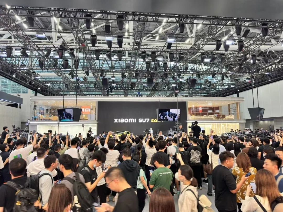 因此,当这辆“战功赫赫”的车出现在广州车展上时,它迅速吸引了巨大的流量,成为为数不多的需要排队才能近距离观看的车型之一。在小米展台外,排队参观小米SU7 Ultra原型车的队伍,已经接近几十米了。小米凭借这款高性能跑车,也成功地将自己的身家提升到了80万元的豪车领域。