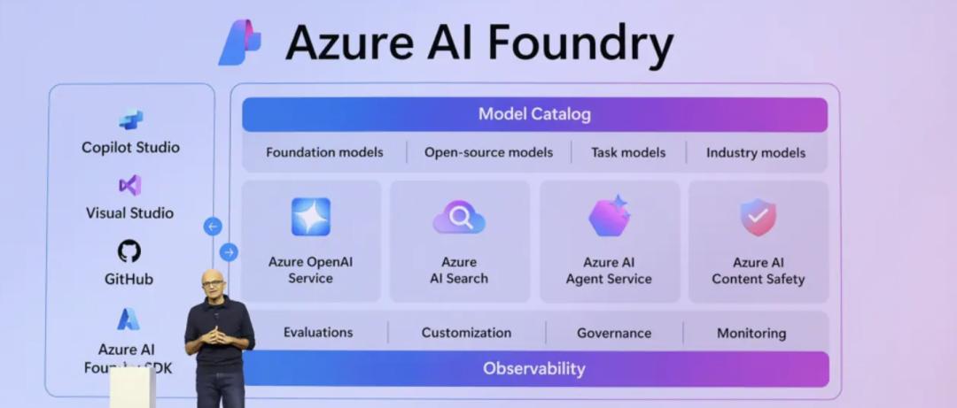 另外,微软还推出了Azure。 AI Foundry SDK。SDK提供了一个低代码工具链,允许开发者定制、测试、部署和管理Agent。开发者可以从25个预构建模板中选择,并通过SDK选择Azureent。 GitHub或AICopilot 应用集成,如Studio。