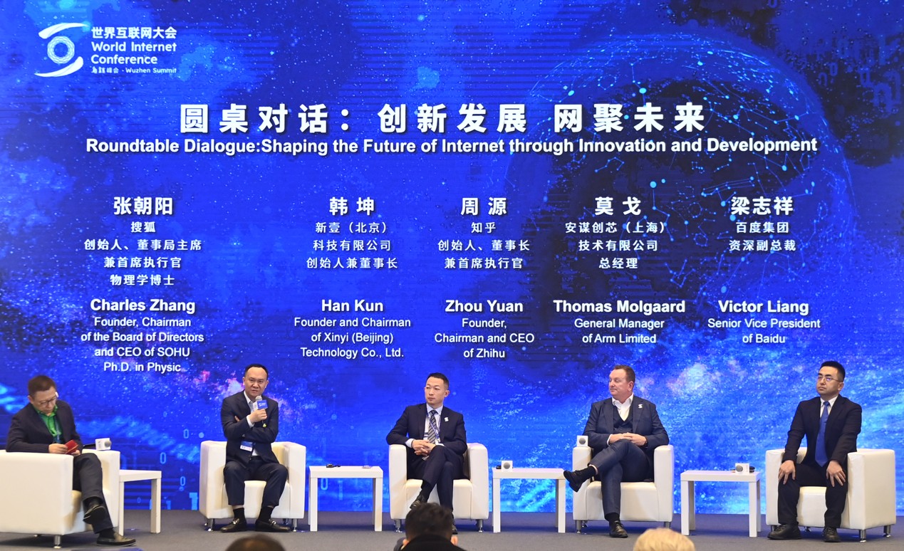 新一科技董事长韩坤(右二)在乌镇峰会现场