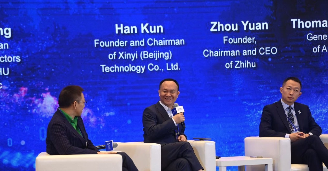 新一科技董事长韩坤(中)在乌镇互联网企业家论坛