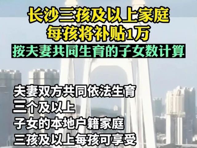 在湖南长沙,生了三个以上的孩子,每个孩子,一次性补贴 1 万元。