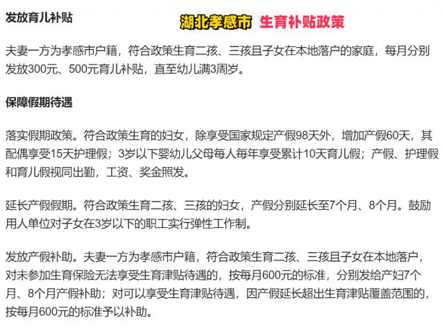 在符合生育政策的前提下,夫妻可以每月分别生二胎和三胎。 300 元、500 一块块的育儿补贴,直到孩子满了。 3 岁。
