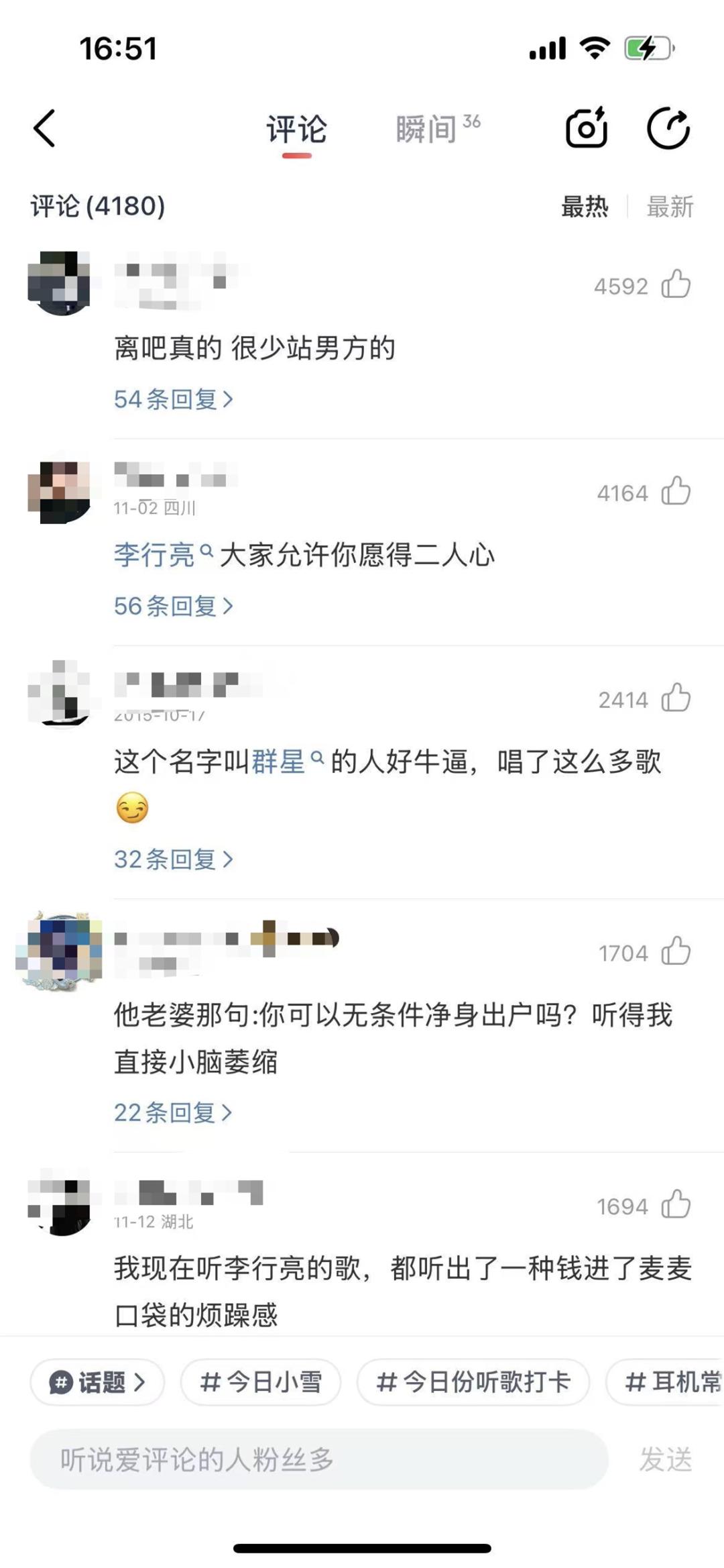 麦学的流行不仅让麦琳成为热门话题的中心人物,也让其他嘉宾,尤其是李行亮意外受益。麦琳的言行引起了很多关于他婚姻关系的讨论,李行亮的“沉默反应”成为社交媒体上的另一个焦点话题。他的歌曲《愿得人心》在网易云音乐的评论区被网友“占领”,大部分内容都是调侃和“劝说”,但也吸引了更多的流量,粉丝数量大幅增加。
