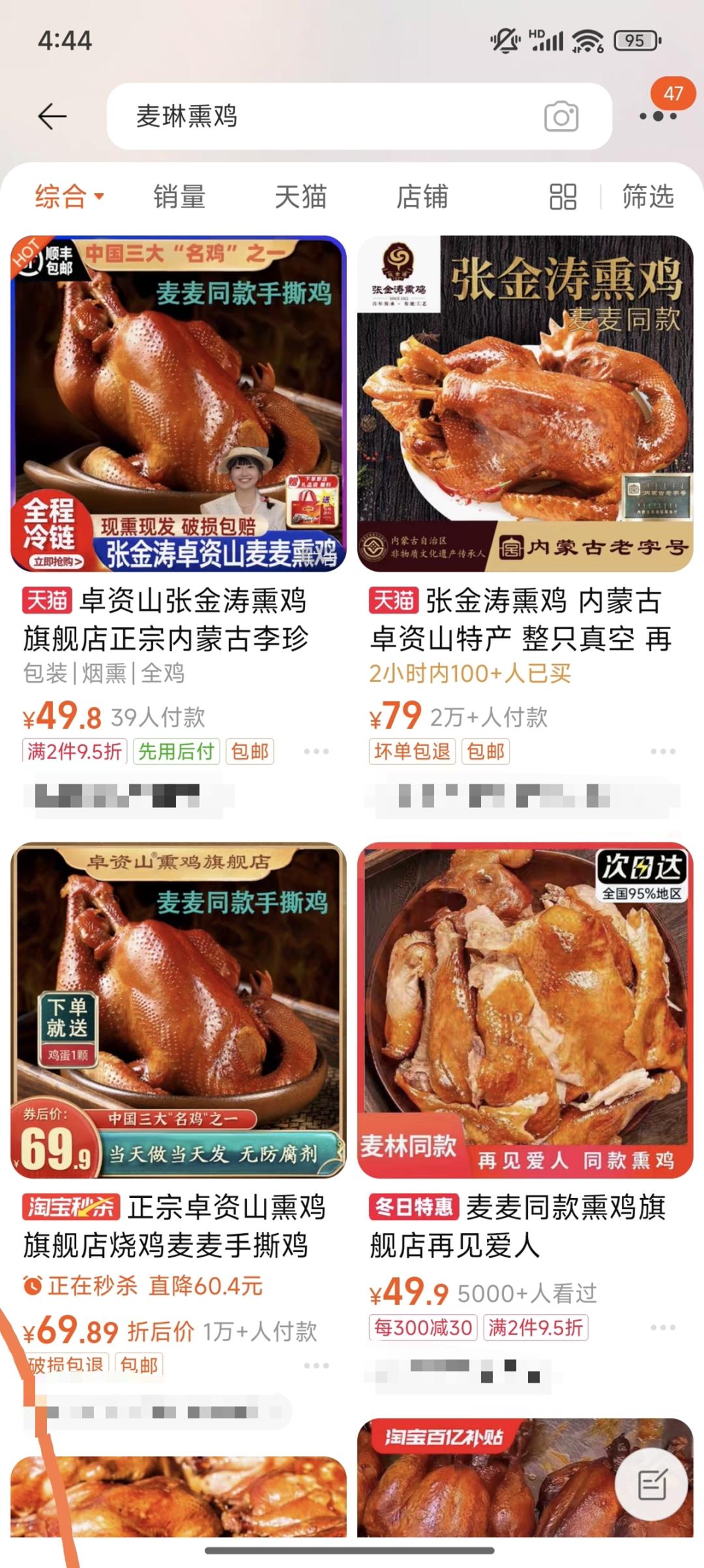 节目中的“熏鸡事件”让卓资山熏鸡成为观众津津乐道的热点,节目中提到的内蒙古奶皮、沈大成青年团等其他地方特产也因“麦学”的普及而走红。电商平台上的相关门店直接打出了“麦麦同款”的口号,将娱乐效应转化为消费动力。