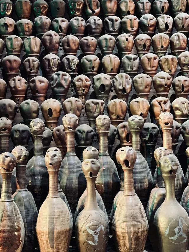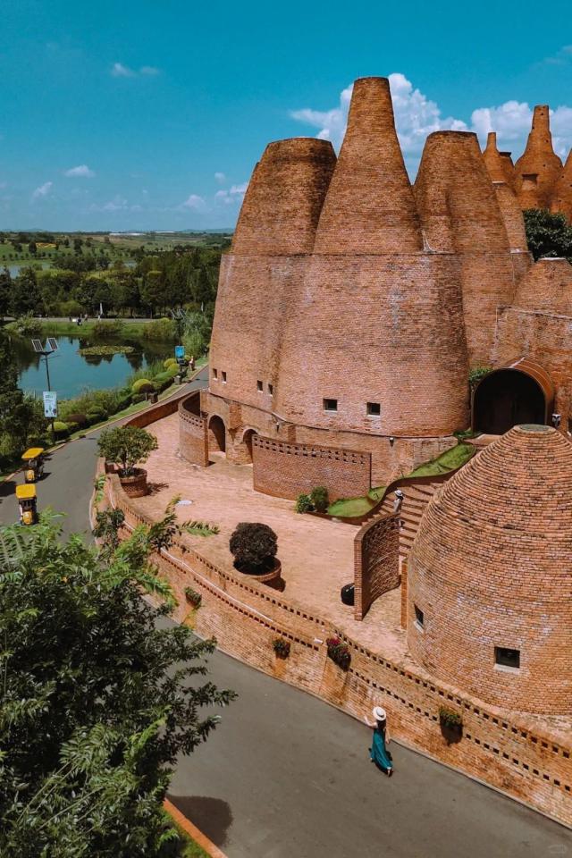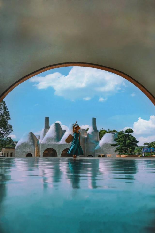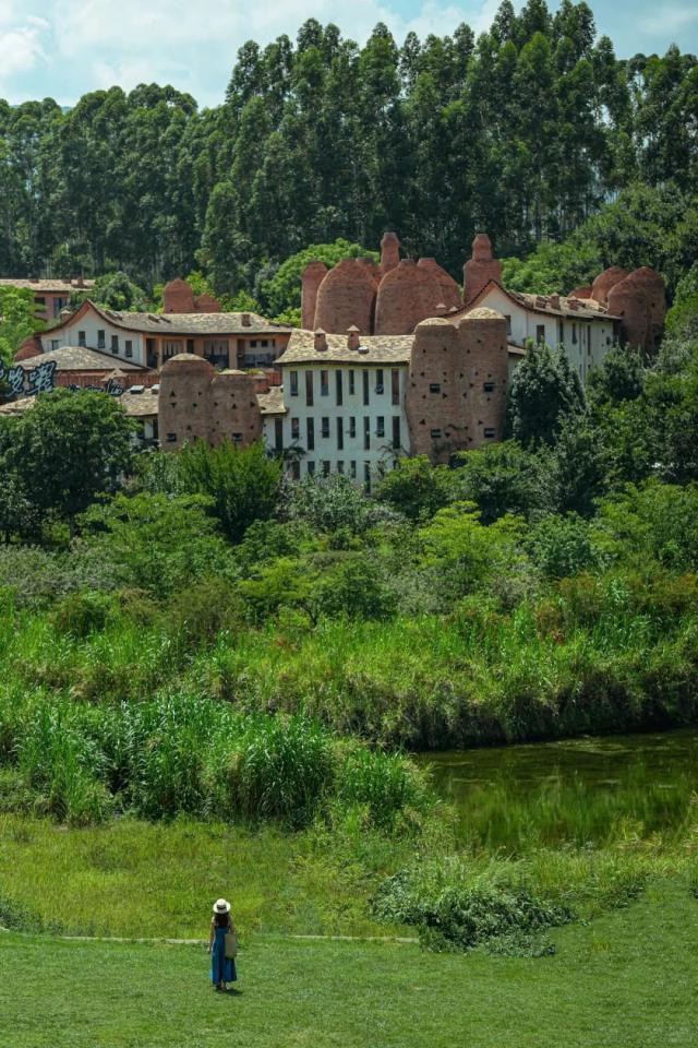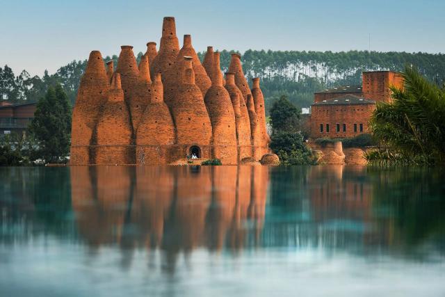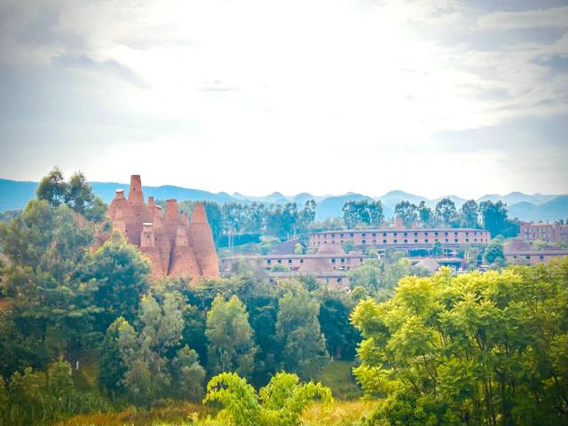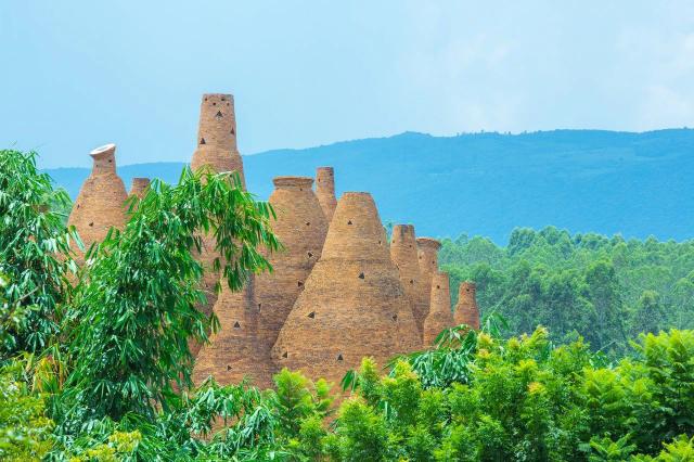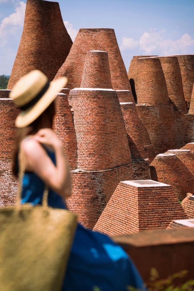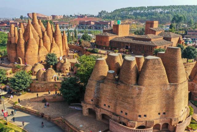 堆积在红砖上的簇生瓦窑,形状像一个大小不一的红酒瓶,与弥勒“东方波尔多”的美誉相对应。