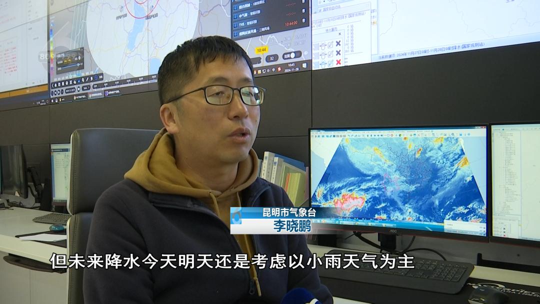 昆明气象台预报员李晓鹏说:“因为全国大部分地区都进入了冬季,处于干季状态。在这段时间里,全国(昆明)降雨相对较多。虽然雨量不大,但从全国排名来看,相对较多。今天和明天主要是小雨天气,周末会变成多云晴天气,冷空气也会结束,不会再有降水的过程。”