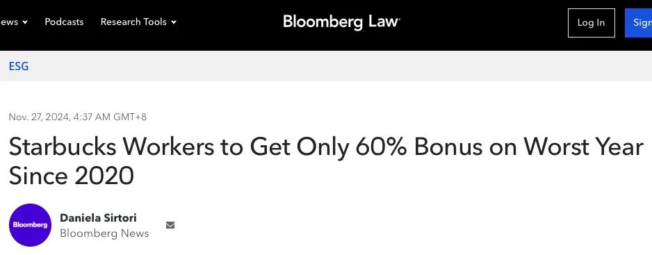 01、星巴克员工奖金缩水,表现不佳!