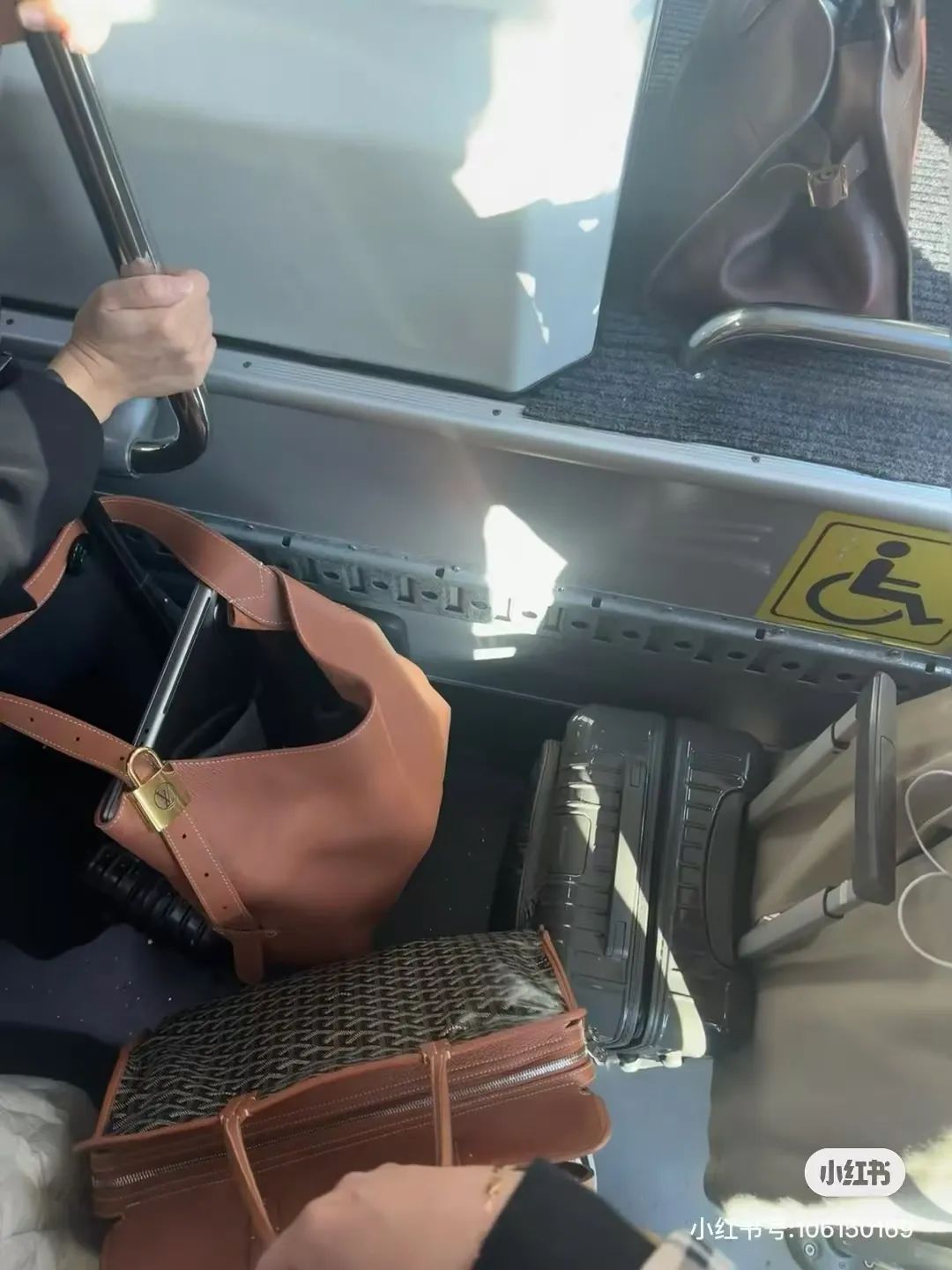 在京沪航班的摆渡车上,一平方米内出现了4个Goyard。